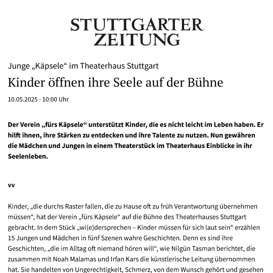 Danke an die Stuttgarter Zeitung für den Artikel vom 5.5.2020!